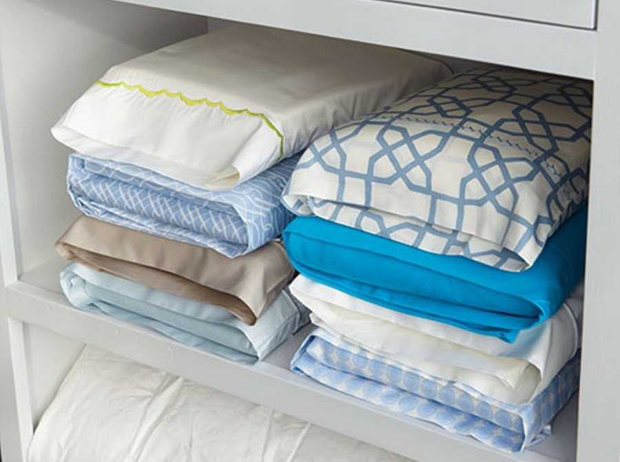 - В вакуумных пакетах, если у вас – дефицит места. Но тогда не забудьте поделить белье по сезонности (по плотности материала).