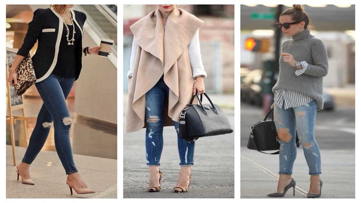 - Деним с характером – рваные или потертые, не рекомендуется комбинировать с классическими туфлями.