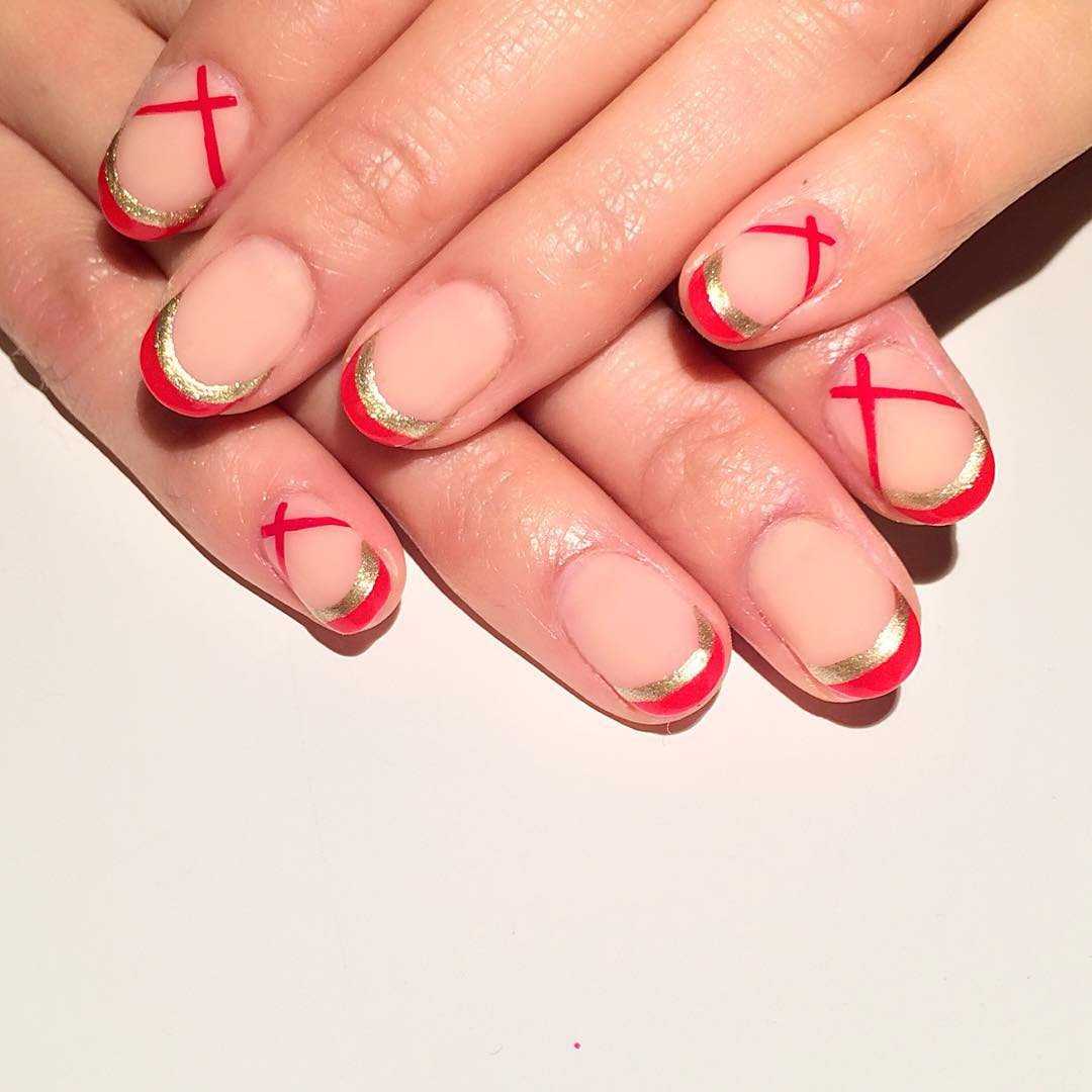 Красный маникюр с золотом и серебром: фото 2022-2023