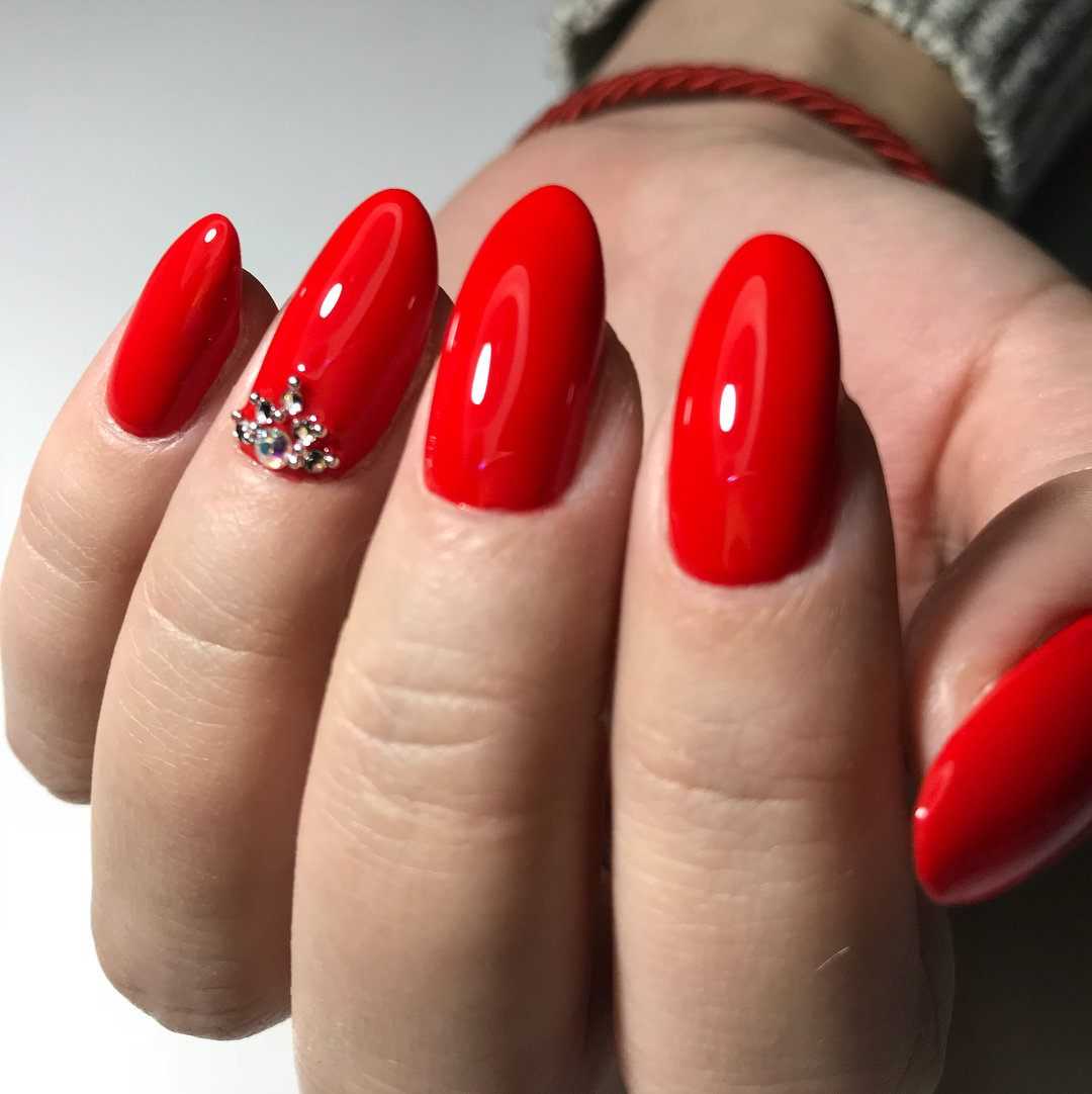 Показать красоту и глубину красного цвета помогут однотонные нейл-арты. Для такого дизайна можно использовать насыщенные оттенки красного, например, вишневый, гранатовый, бордо и другие