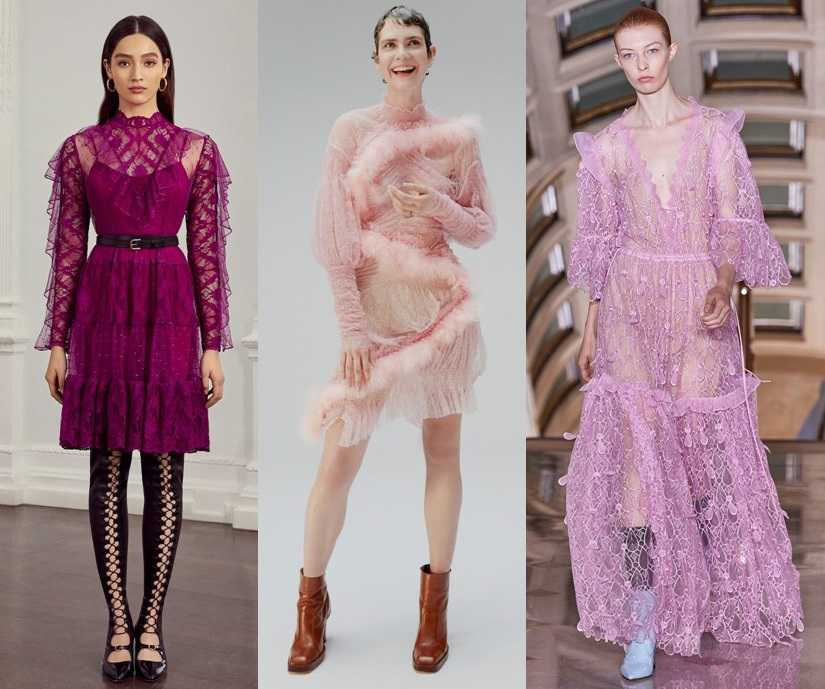 Большой популярностью весной 2020-2021 года будут пользоваться платья в прозрачном стиле. Фасоны таких одежд могут быть самыми разными, от коротких мини платьев до нарядов в пол.