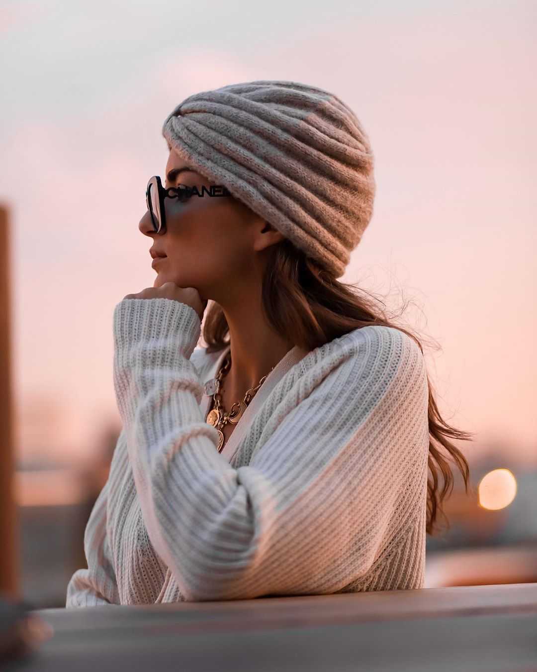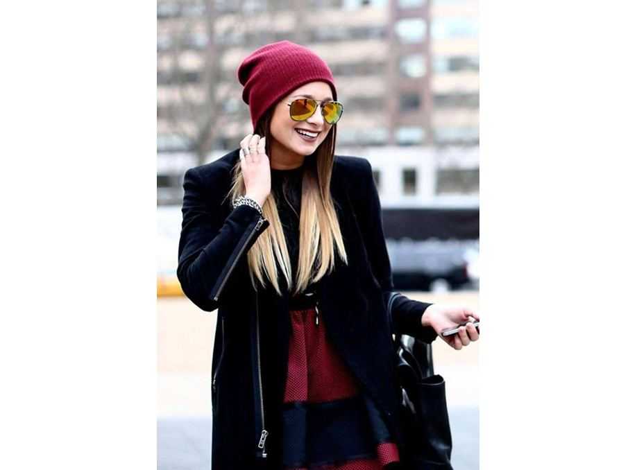 - Если вы боитесь навредить укладке, визуально уменьшить голову и нарушить пропорции или просто не хотите выглядеть “лысой”, не выбирайте шапки, которые сильно обтягивают голову. Идеальный головной убор слегка оверсайзный, но в то же время хорошо сидит на голове.