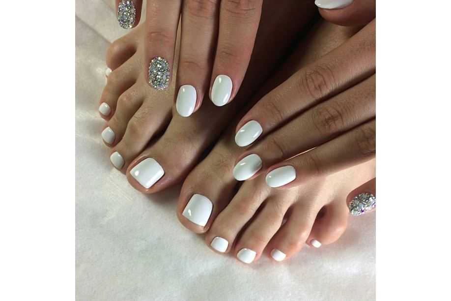 В предстоящем сезоне белый педикюр окажется настолько универсальным и мегастильным, что будет прекрасно смотреться в тандеме с маникюром такого же цвета.