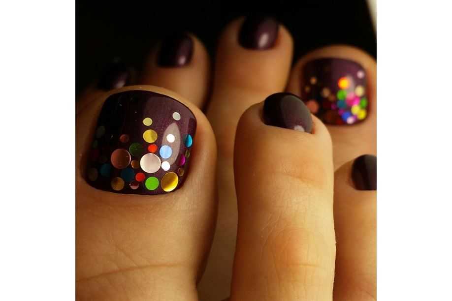 Какой бы дизайн ноготков вы не выбрали, такой блестящий педикюр будет эффектным в любом случае.
