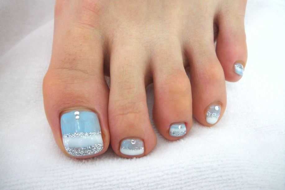 Если вы хотите покорить всех без исключения своим летним дизайном ногтей, то стоит обратить внимание на педикюр с добавлением различных стразов, камней, бульонок и хрустальных крошек.