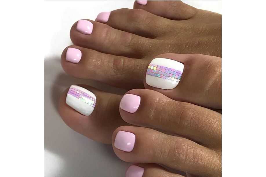 Если вам не хочется делать однотонный педикюр белого цвета, то можно смело добавить:
