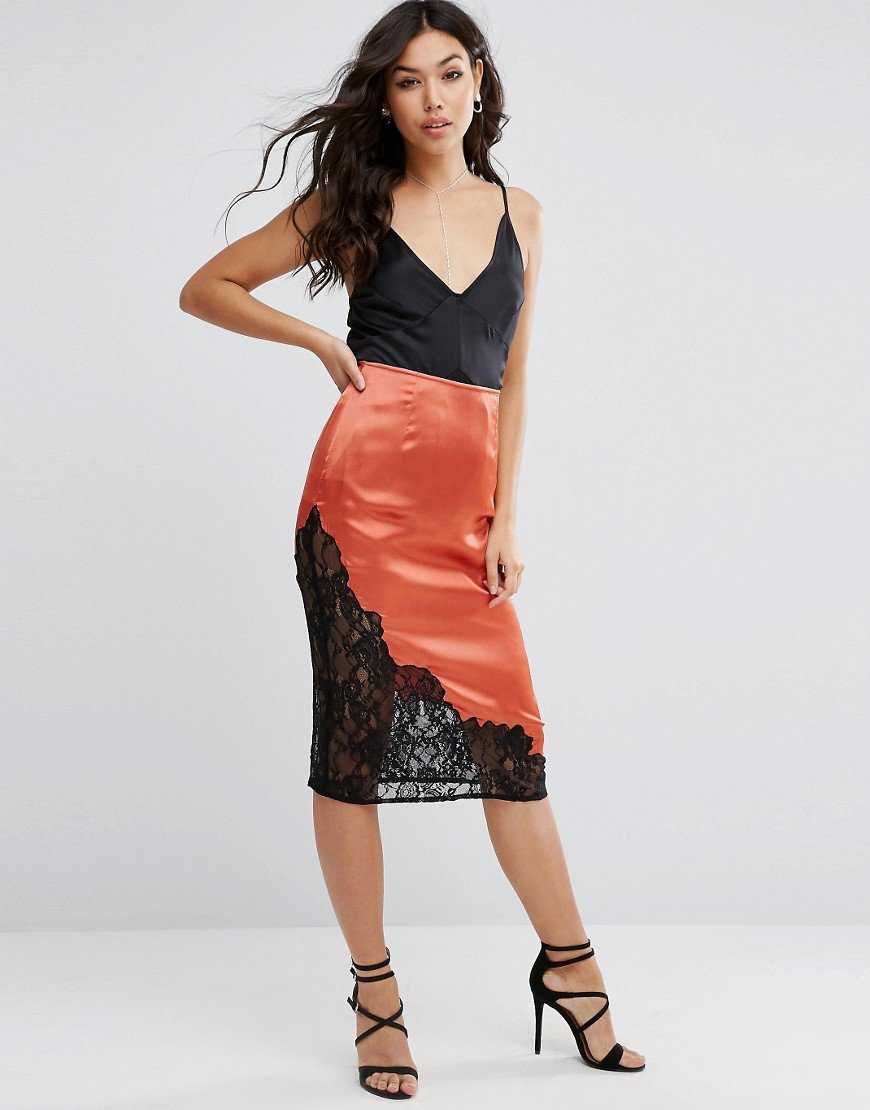 Царственное сочетание атласа с кружевом сделает дорогим любой наряд. Юбка из атласа с кружевом – это праздничный вечерний вариант эффектного стильного лука.