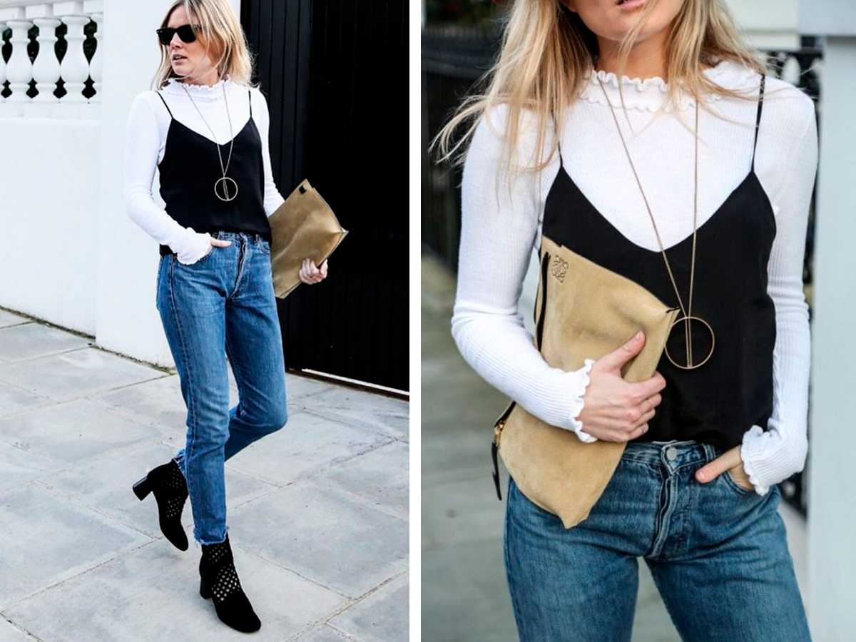 Меняем очередность слоёв одежды местами, надевая бельевой топ поверх футболки, рубашки или водолазки.