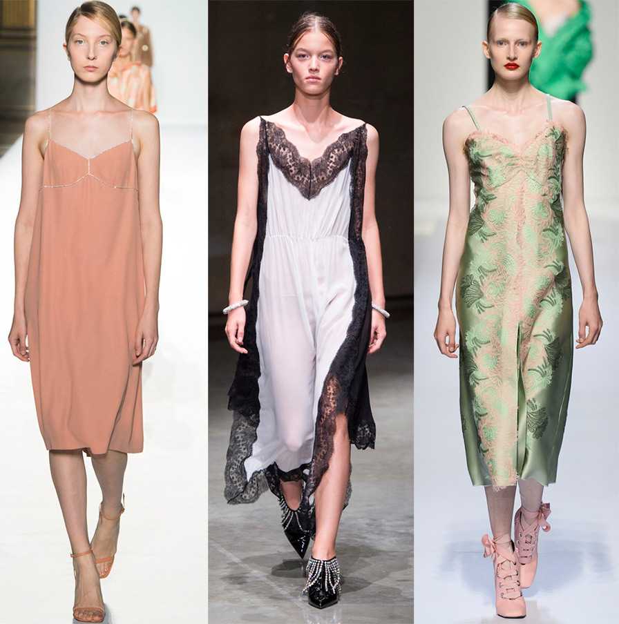 Атласные и шелковые платья с кружевом – главный хит сезона. Модели платьев в бельевом стиле могут быть свободными и облегающими, длиной до середины бедра, по колено или до середины икры. Каждый из фасонов смотрится утонченно и очень соблазнительно.
