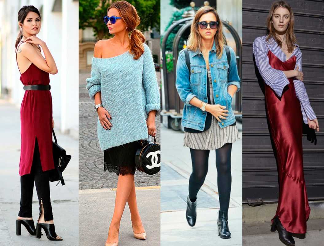 Также платье-комбинацию можно сочетать с такими стильными предметами женского гардероба, как куртка-косуха, короткая куртка, джемпер, жакет, кардиган, тренч, пальто.