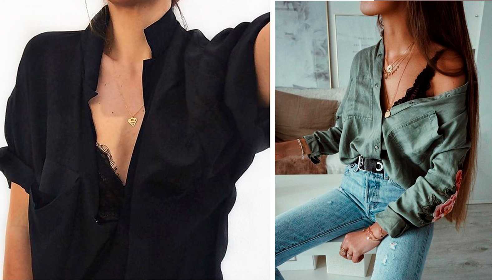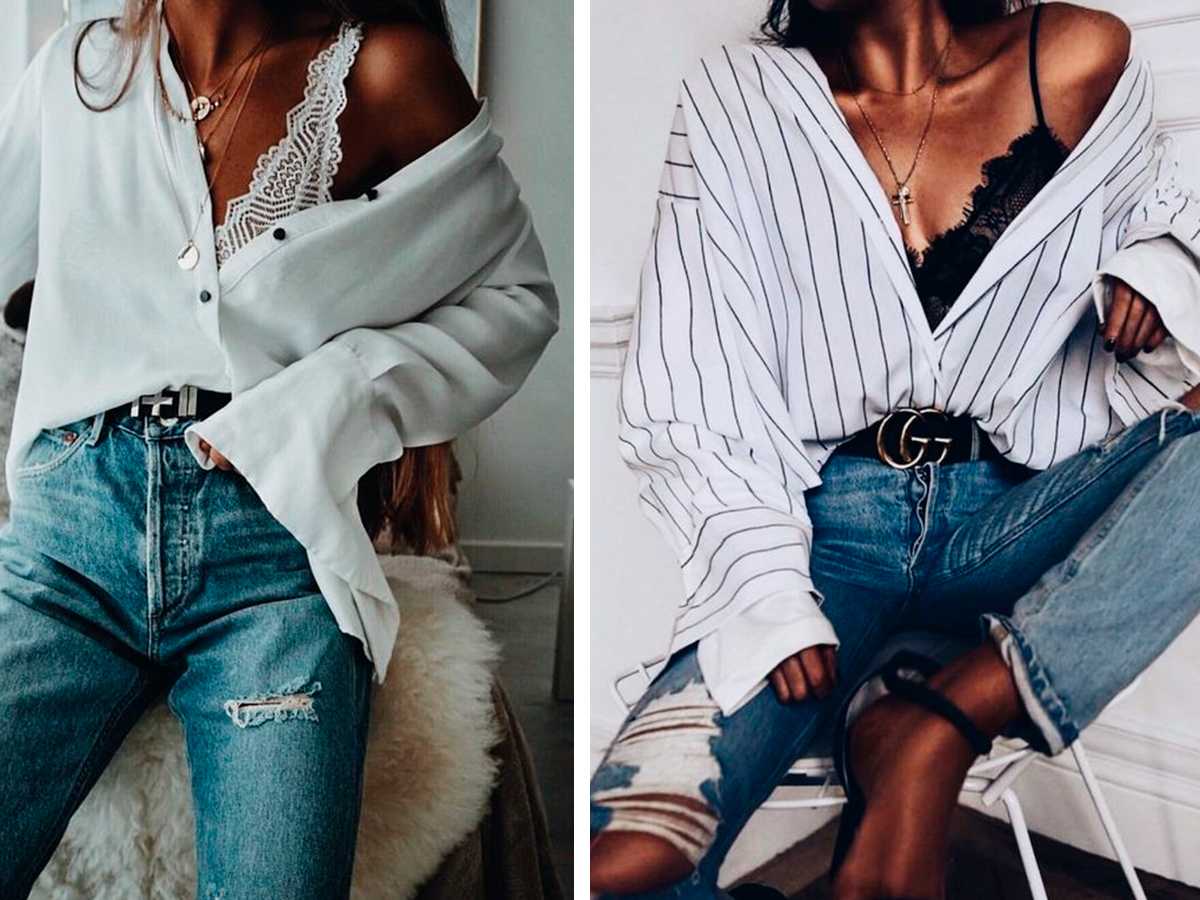 В виде бюстье. Эффектные шелковые или кружевные топы в виде бюстье — это неоспоримый тренд сезона, который можно увидеть практически на всех фото с примерами модных луков. Носить такие изделия по одиночке не рекомендуется. Но вот с брючным костюмом или цветным шелковым кардиганом и джинсами они будут смотреться идеально.