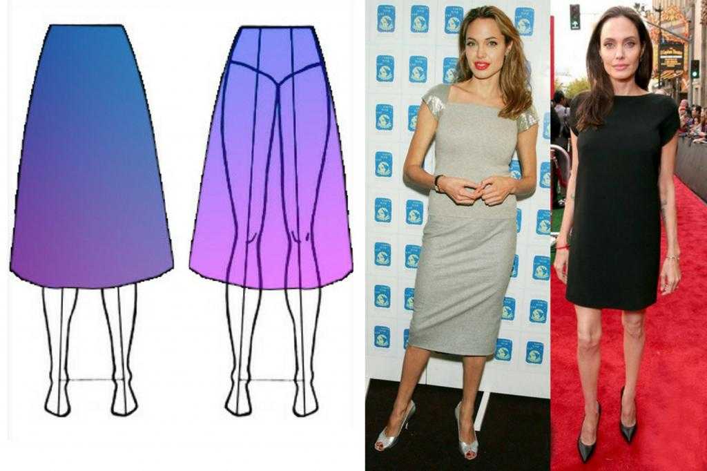 Отказаться необходимо от нарядов с пышным подолом, которые акцентируют внимание на худобе ног. Акцент стоит делать на груди или талии