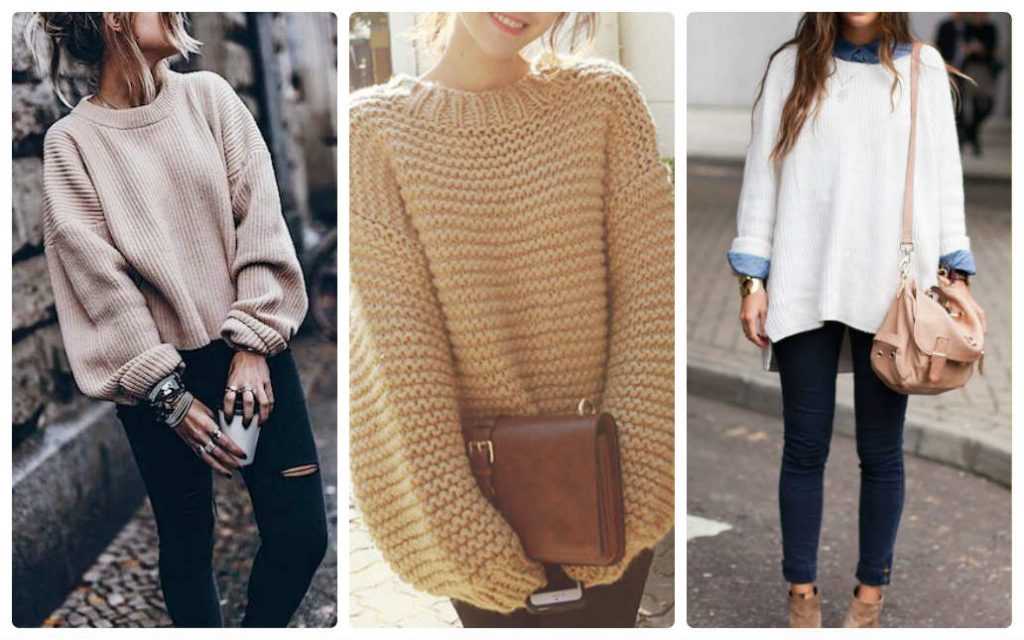 - Тонкие однотонные джемпера или свитера – выбирайте верх без ярких элементов декора: рисунки, узоры, надписи. Можно допустить небольшую полоску.