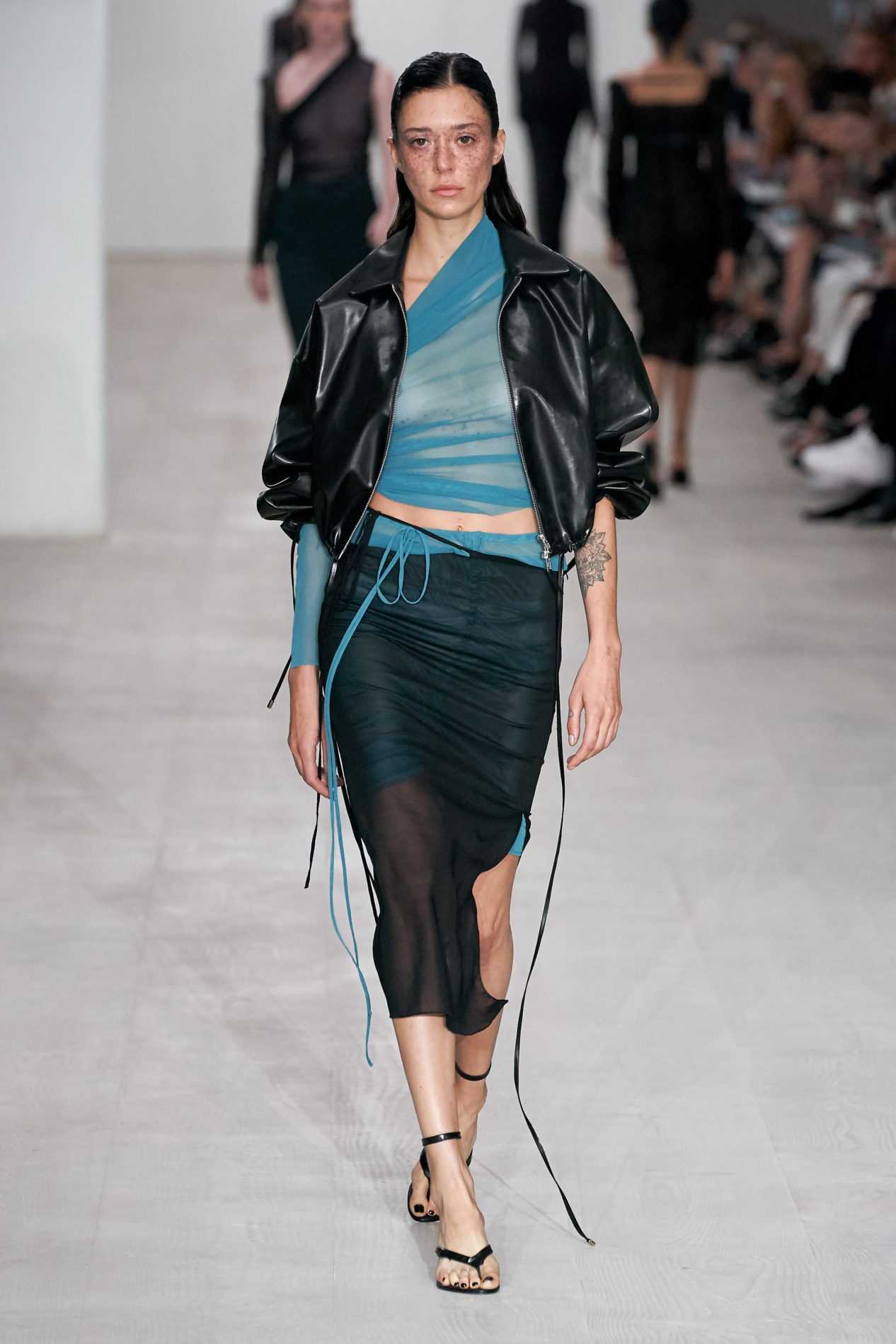 - Не носите косуху с платьями асимметричного кроя, ведь на ней – косая молния, это и есть главный акцент.