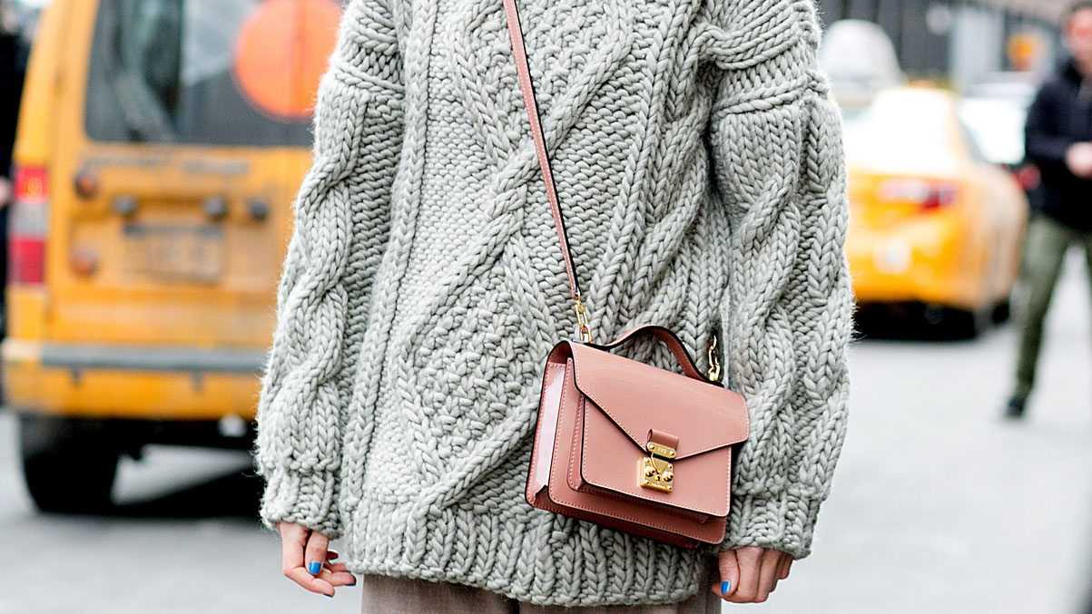 Свитера и кардиганы свободного кроя обязательно должны быть выполнены крупной вязкой либо иметь мелкую убористую текстуру.