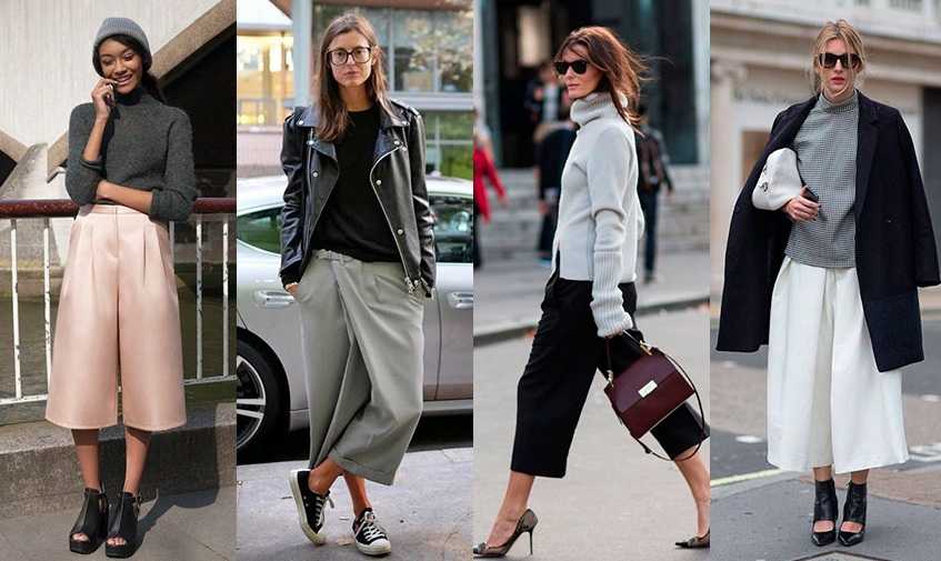Стильные образы можно составить не только с укороченными брюками. В ход могут идти самые разные фасоны.
