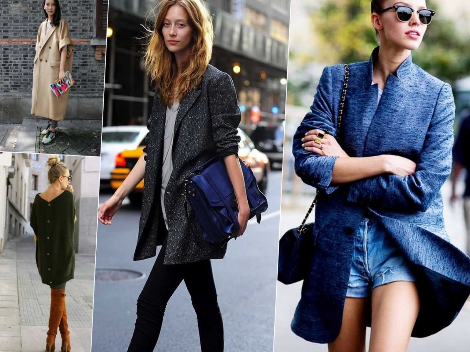 Оверсайз провозглашает свободу. С верхней одеждой подобного стиля одновременно сочетают и шапки-мешки и широкополые шляпы, и мартинсы и босоножки на шпильке. Открывается простор и в плане низа. Доходит до того, что смелые девушки надевают под объёмные пальто сарафаны из очень лёгких и летящих тканей.