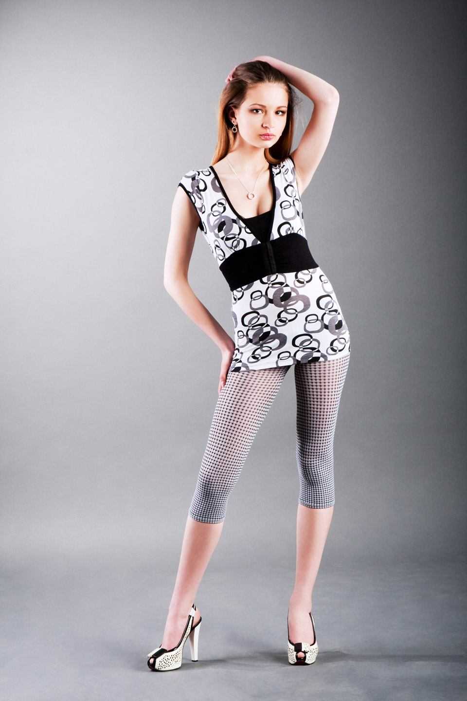 Чаще всего такие леггинсы рекомендуется сочетать с темным верхом. Это могут быть футболки, майки, корсеты, широкие свитера, а также туники. Выбирайте ваш верх без декора или с минималистическим рисунком. Также допускаются стразы и различный декор.
