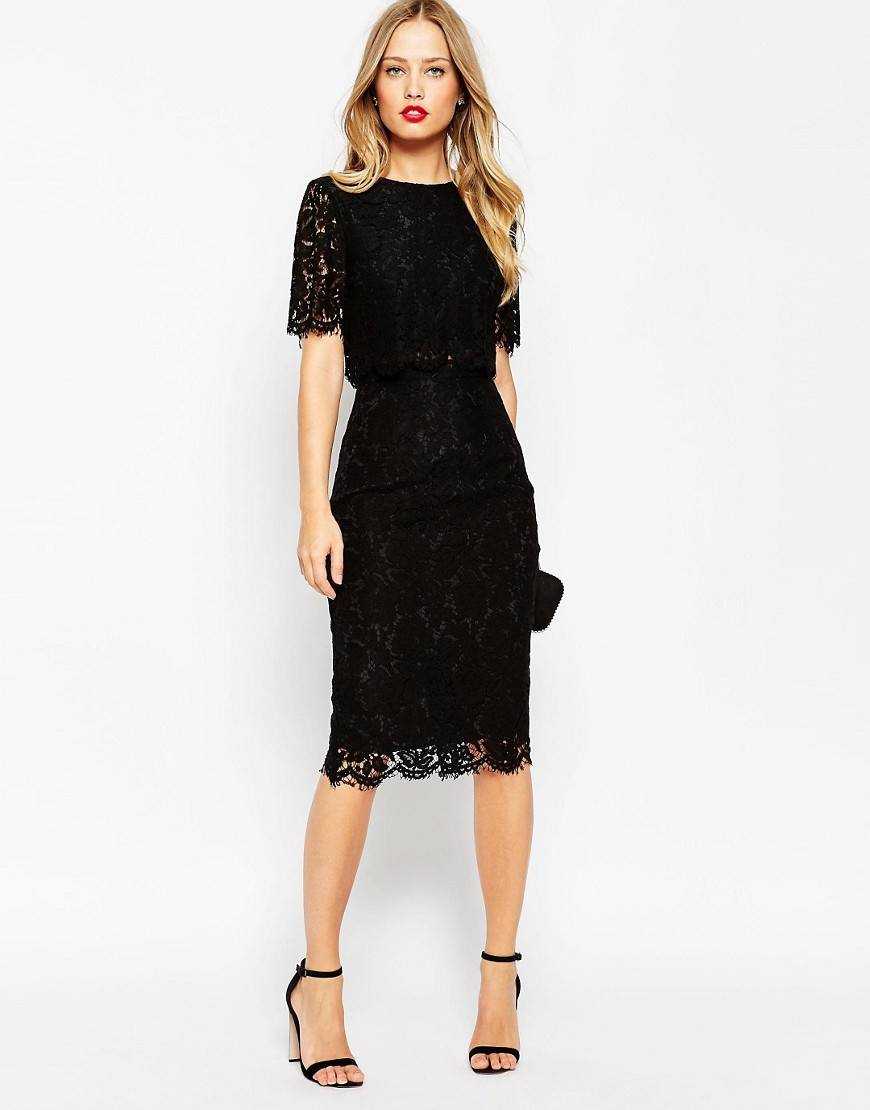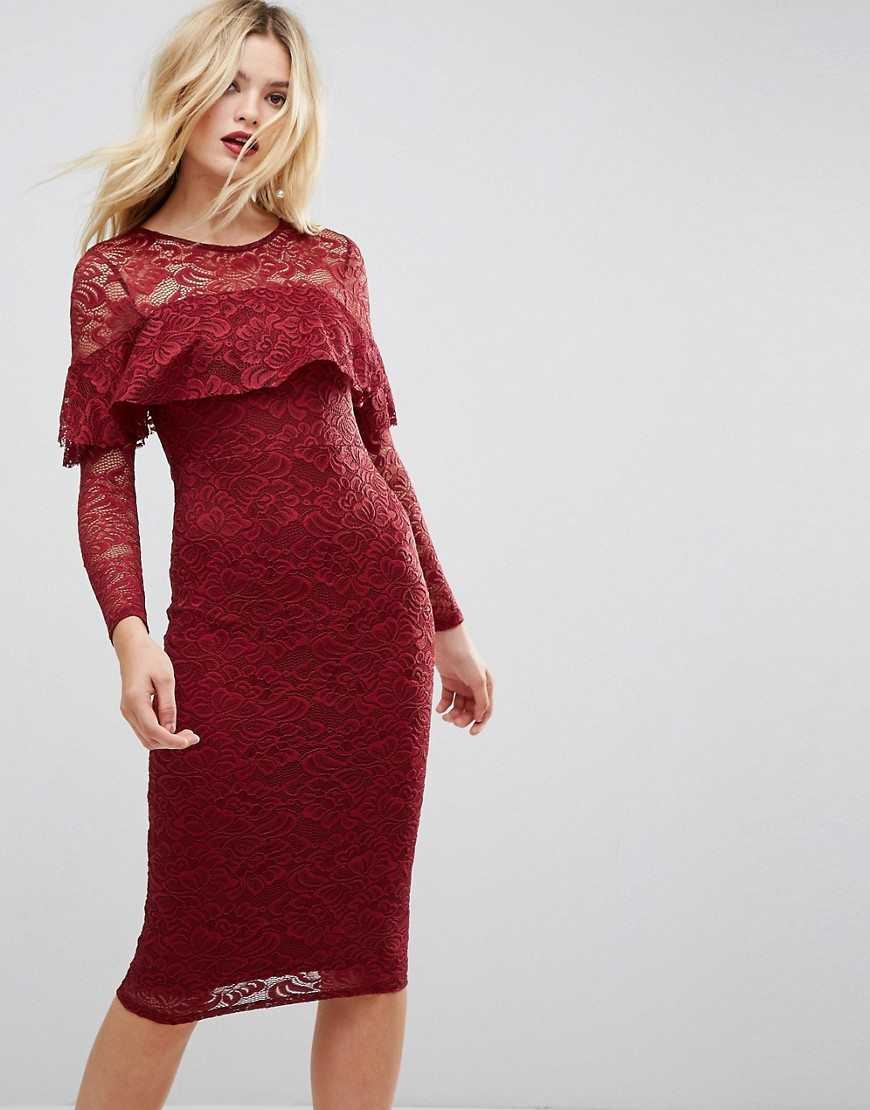 Кружевные платья миди максимально подчеркивают нежность и изящность девушки. Комбинирование таких платьев предполагает две возможности. Первый – это усиление женственности, в таком случае к платью подбираются лодочки на каблуке, маленькая сумочка, элегантные украшения, сверху можно набросить меховую шубку или палантин. В таком наряде можно отправиться на свидание или на светское мероприятие. Второй путь – это контраст. Женственный пафос платья усиливается при помощи нарочито грубых, брутальных вещей, кожаной куртки, ботинок в мужском стиле, крупные украшения. Такие образы выглядят очень актуально и свежо.