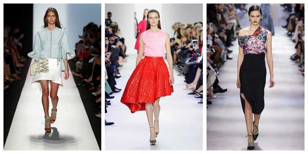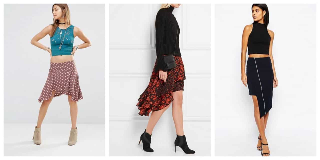 Асимметричная юбка наверняка понравится любителям обуви — крой юбки — идеальная оправа для обуви. Такая юбка позволяет демонстрировать обувь — особенно если вы любитель высоких каблуков с ремешком на щиколотке. Не забывайте, однако, что асимметричная юбка эффектно смотрится в движении и теряет свое очарование в покое.