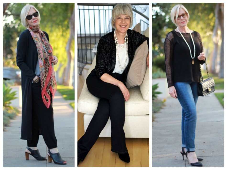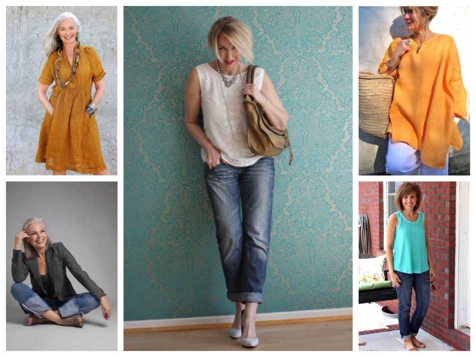 Джинсы «mom» — идеальное сочетание комфорта и стиля, к тому же они способны скрыть несовершенства фигуры и подчеркнуть, что эта дама за 50 знает толк в моде. Носить модные брюки женщинам после 50 лет рекомендуется с блузами, вязаными топами и стильными джемперами. Не рекомендуется сочетать с трикотажными футболками, так как есть риск превратиться с модной дамы в уставшую женщину средних лет.