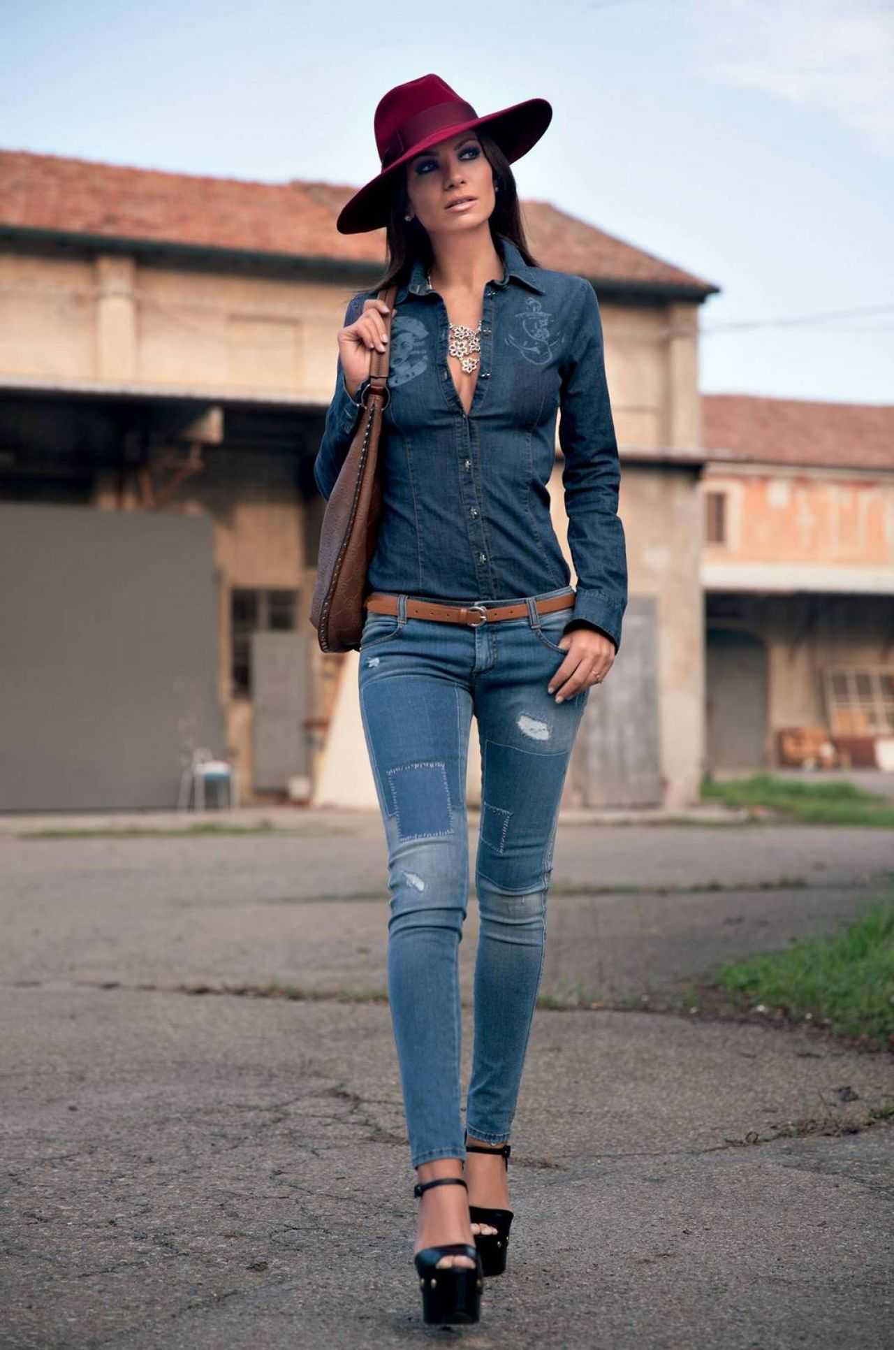 Джинсы и джинсовые куртки могут составить эффектную комбинацию с кожаными вещами, ковбойскими рубашками, трикотажными свитерами и даже шелковыми блузами.