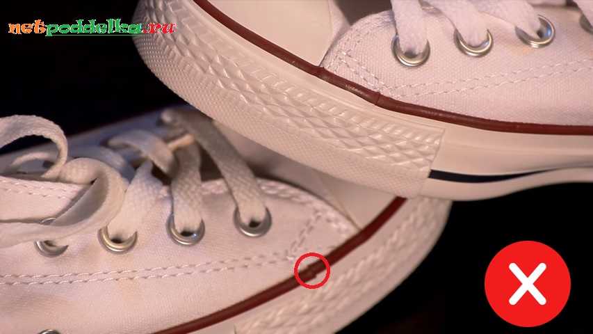 Оригинальные Converse изготавливаются с применением прочной ткани, например, плотной парусины. При этом шов нельзя назвать идеальным. Фирменные стежки могут немного отличаться по размеру. Все же при взгляде на шов подделки в глаза бросается небрежное изготовление.