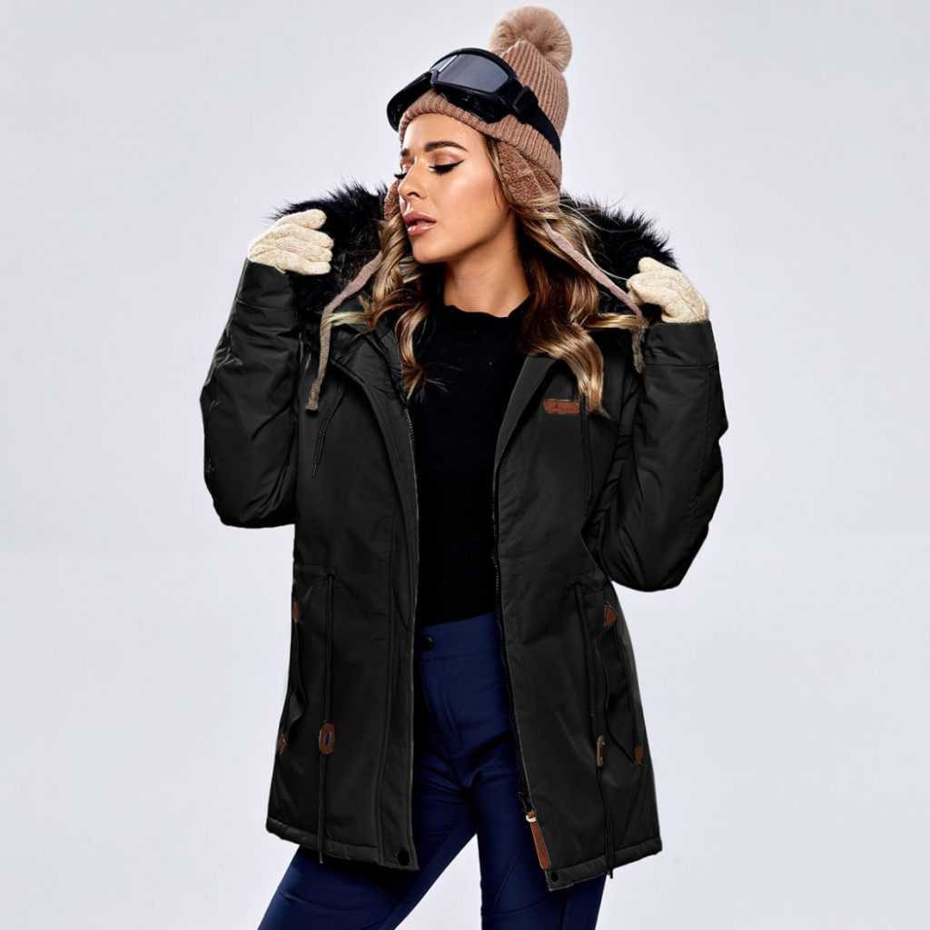 - На капюшоне. Сохраняет тепло в самое холодное время. Особенно актуально для тех, кто не признает головные уборы или бережет свою стрижку.