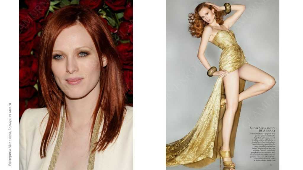Еще один пример роскошной яркости осеннего цветотипа: светлая кожа, карие глаза, ярко-рыжие волосы.