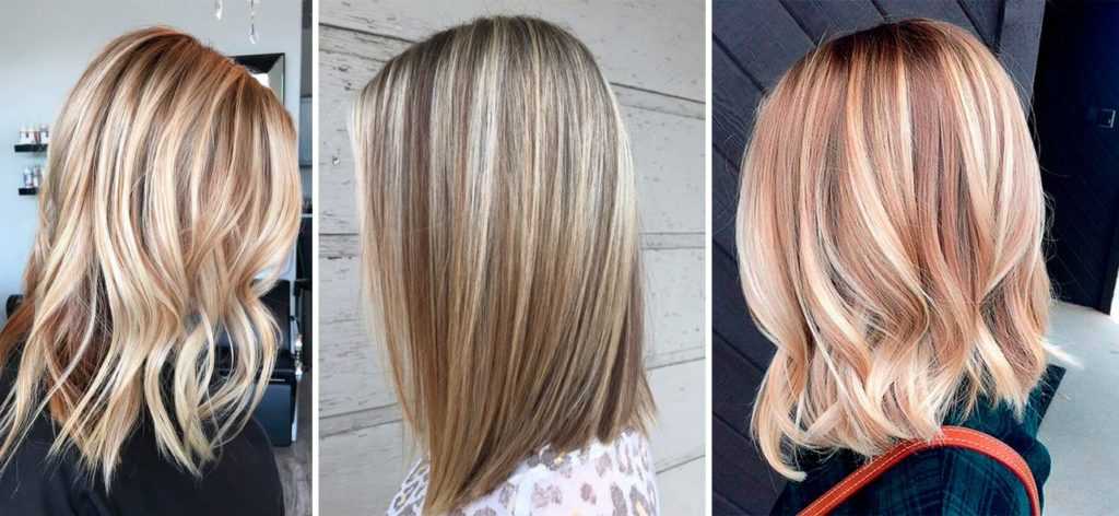 На средние волосы можно воплотить любое окрашивание с контрастными светлыми прядями.