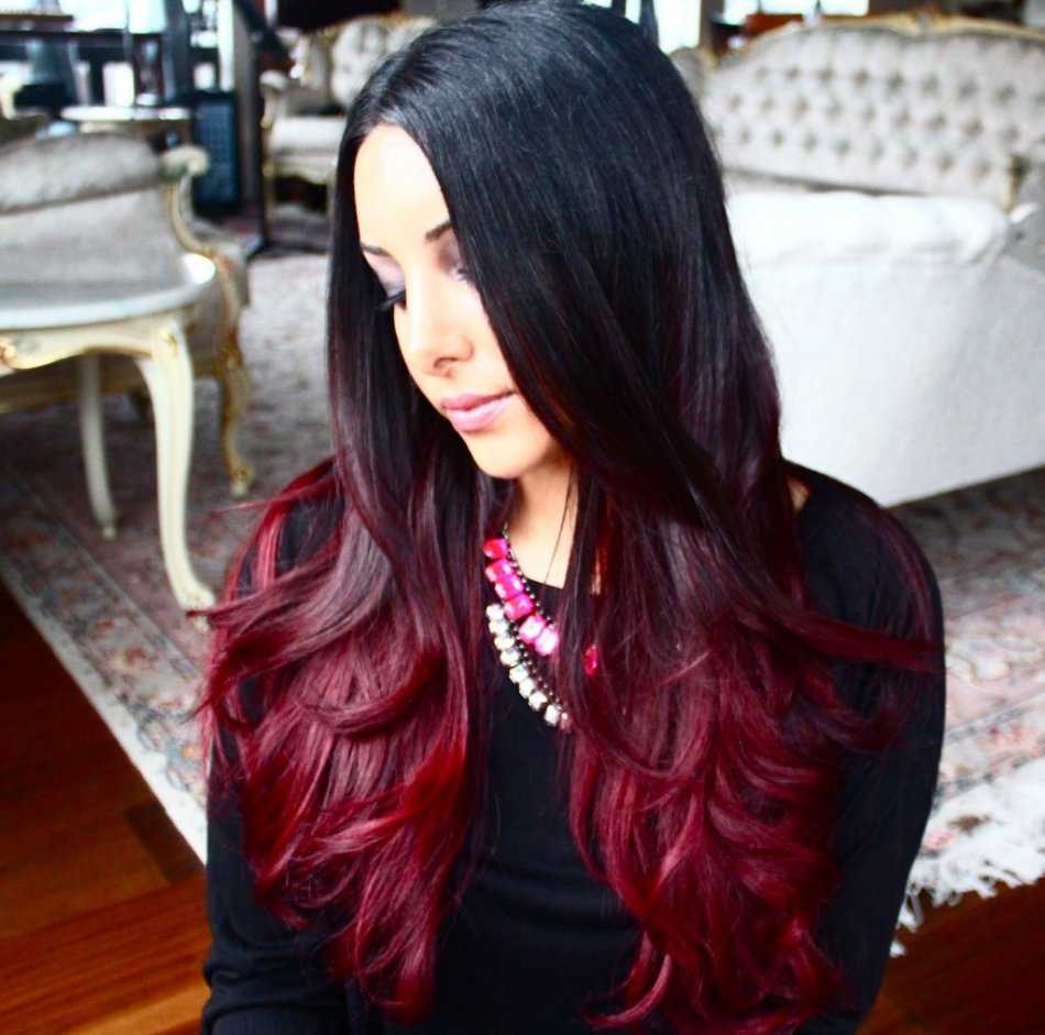 Покраска в красный цвет не травмирует структуру волос. Брюнеткам, желающим внести разнообразие в свою жизнь, темно-красные цвета подойдут идеально.