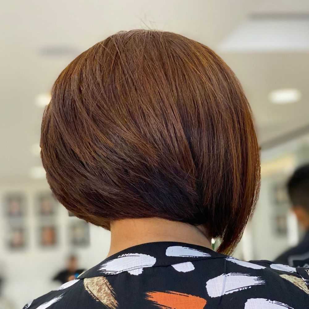 На редких волосах нужен объем на макушке. Градуированный боб каре как раз справится с этой проблемой. Асимметрия подчеркнет овал лица. Правильная покраска сможет сделать волосы визуально толще и гуще.