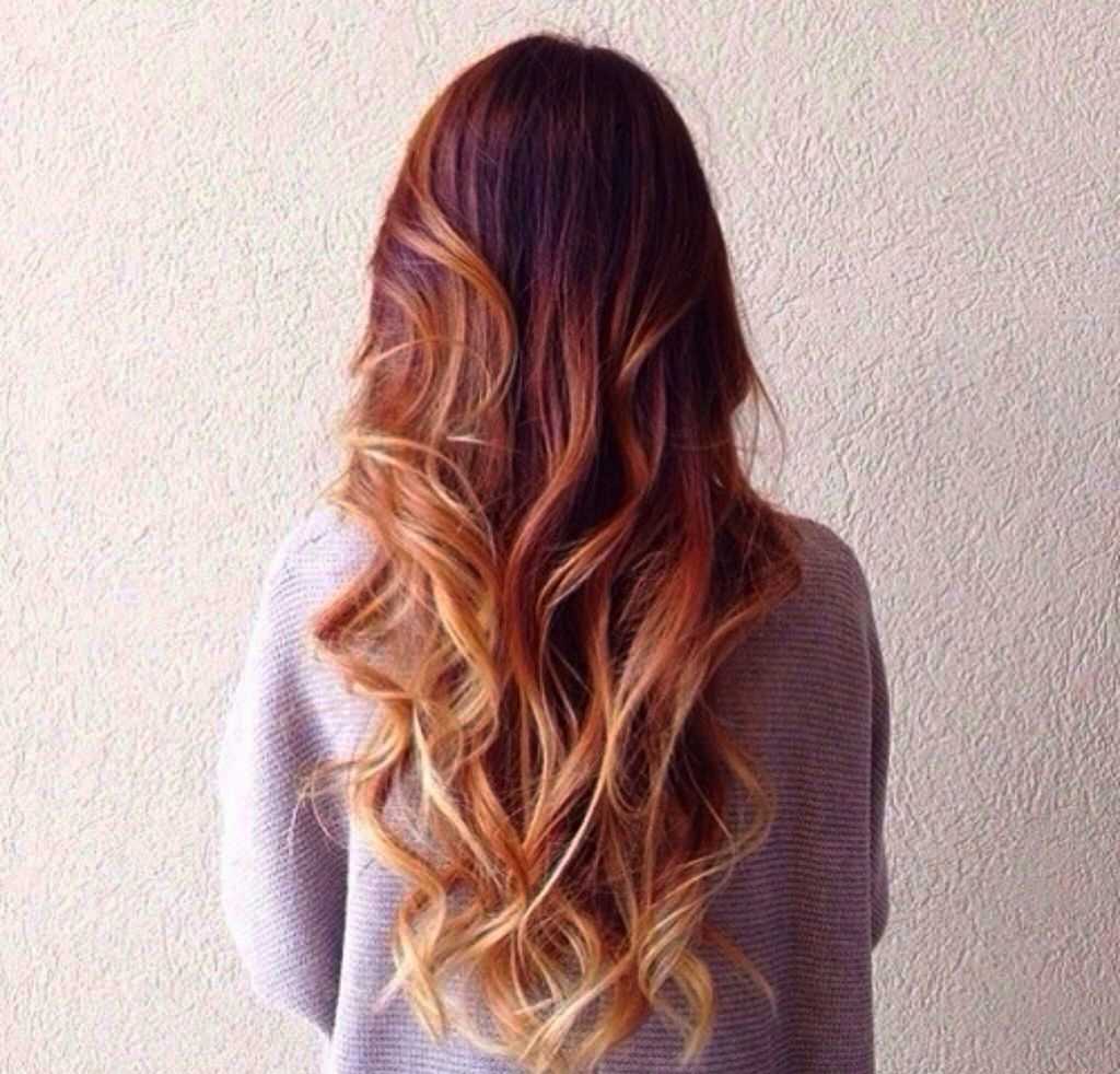 Медные оттенки будут органично смотреться на рыжих локонах, если покрасить волосы в технике мелирование или балаяж. Для светло-рыжих волос стоит подобрать светлые цвета с золотистым отливом.