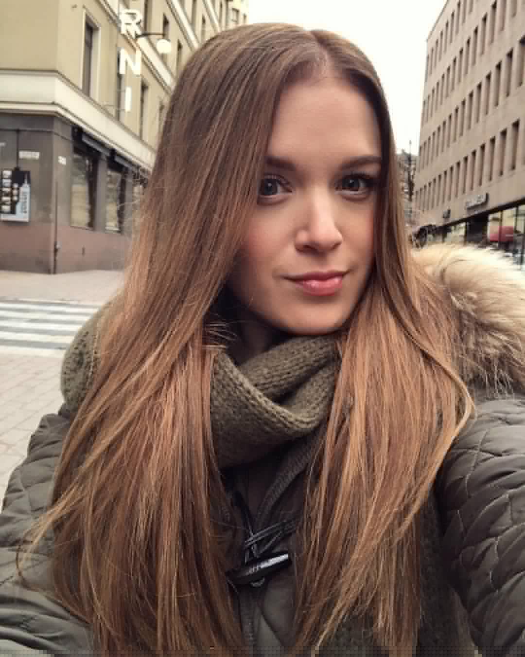 Русые волосы придают образу больше романтичности. Чтобы голубые оттенки глаз смотрелись еще эффектней, стоит использовать колорирование, смешав пепельный оттенок вместе со светло- и тёмно-русым.