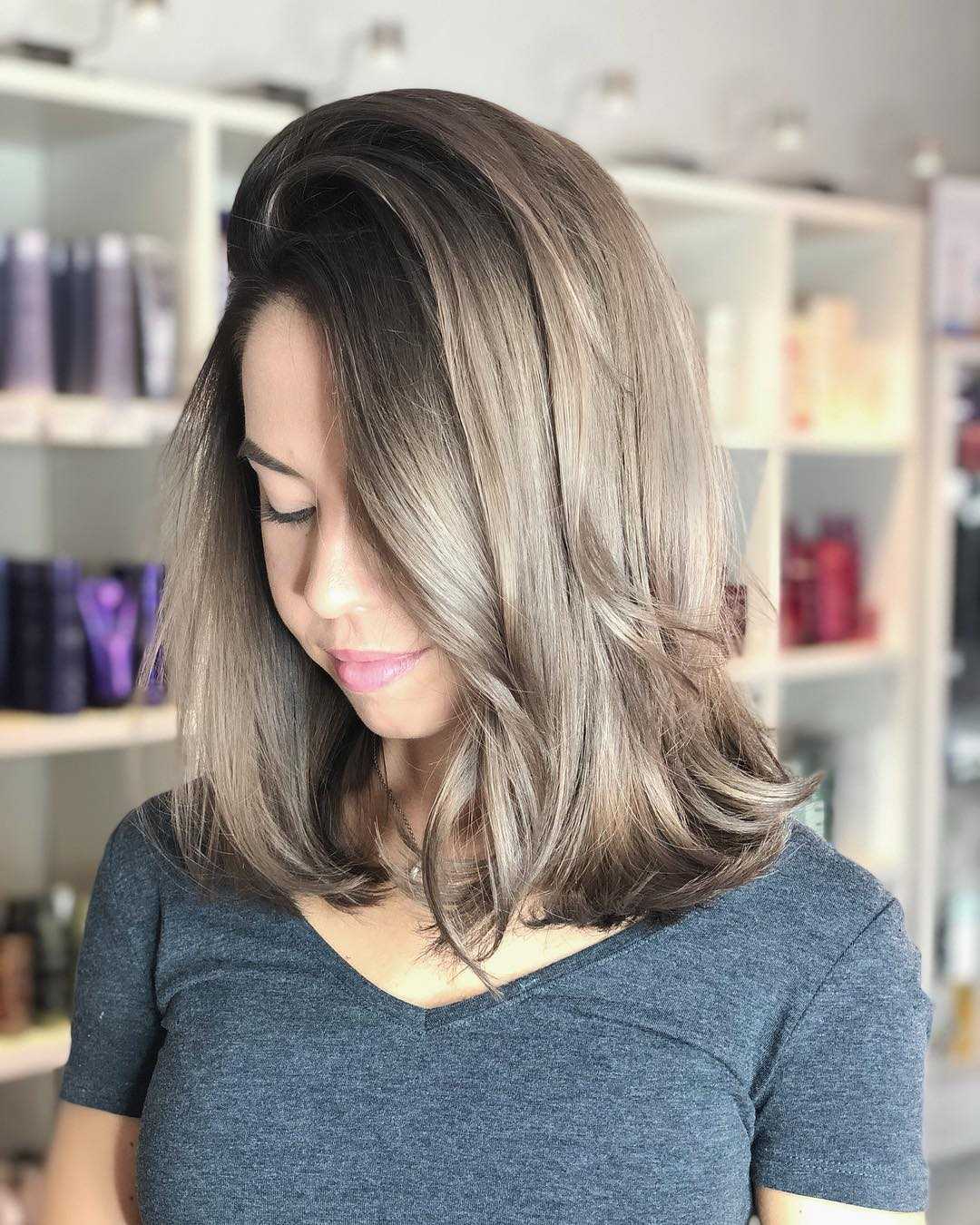 Холодная пепельная гамма подходит для голубоглазых девушек со светлой кожей. Чтобы создать более интересный и необычный цвет, можно смешать светлые и темные оттенки палитры. Так вариант колорирования создаст интересный переход цвета, еще больше подчеркивающий голубые глаза.