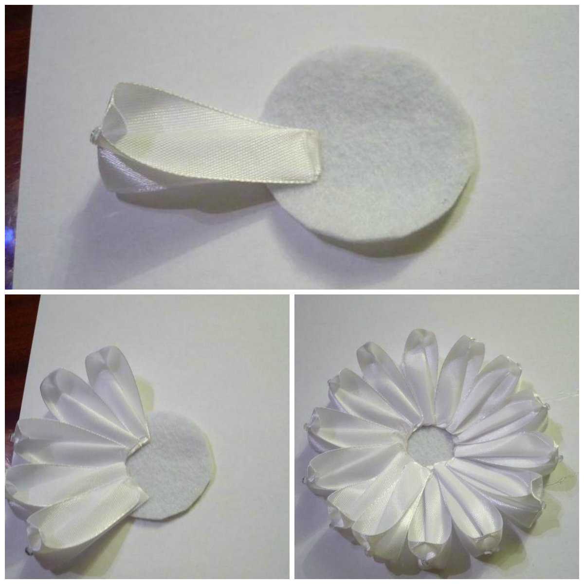 Наклеив лепестки, приклейте к обратной стороне фетра резинку и бант готов