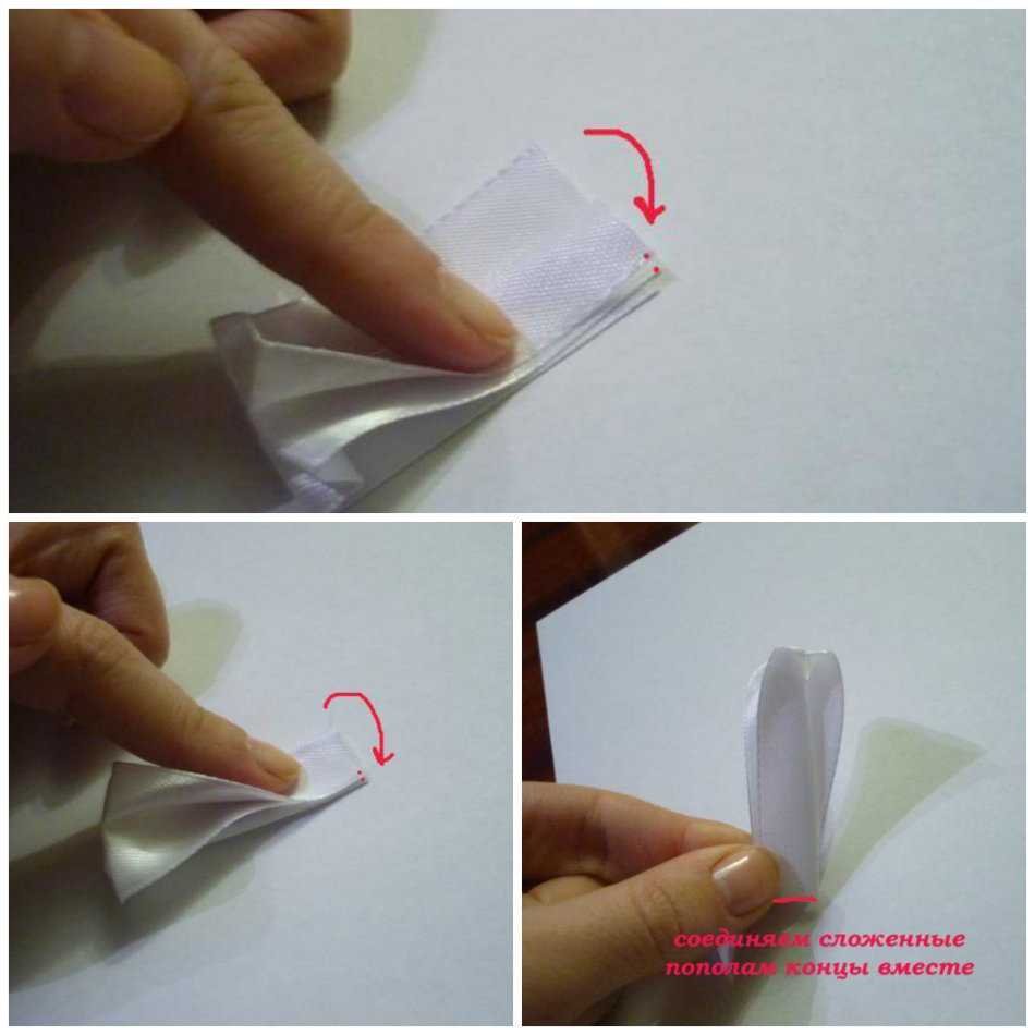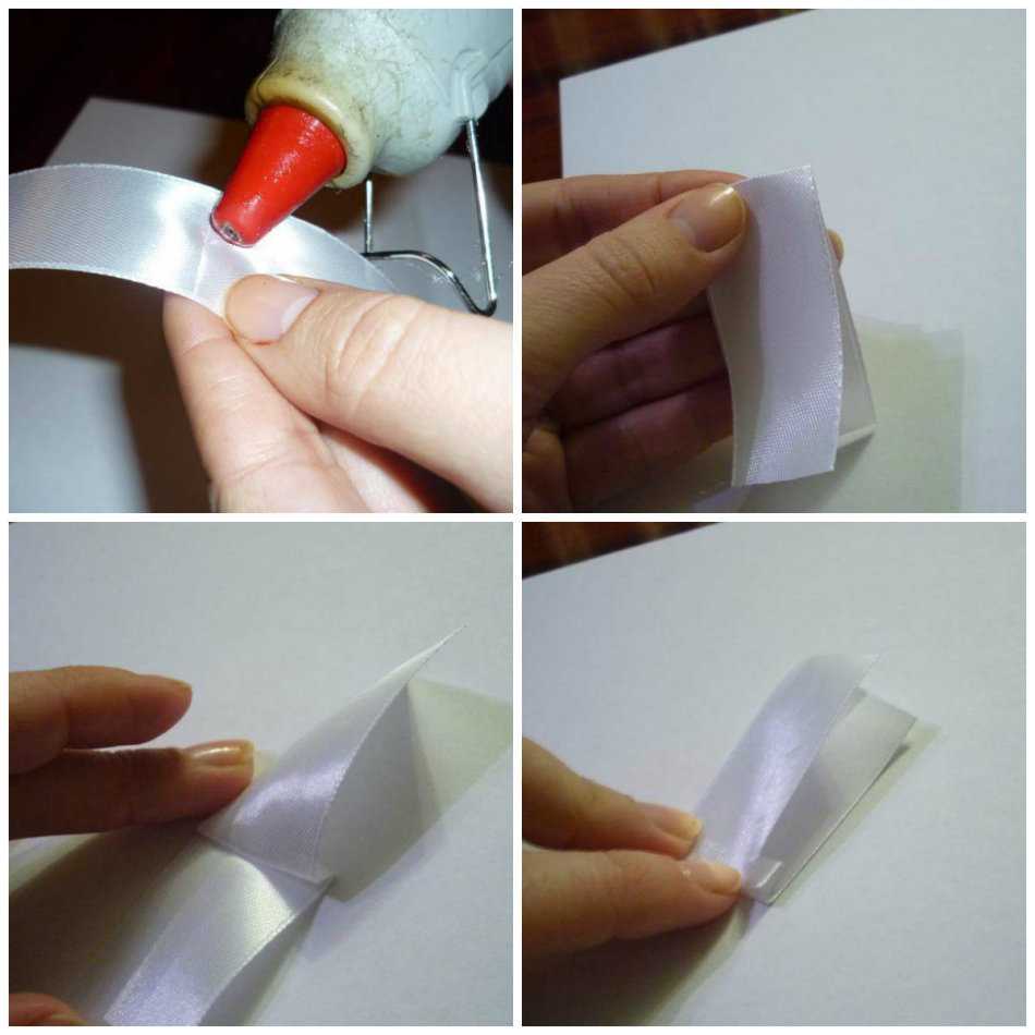 Держите сложенные края, опалите зажигалкой и прижмите. Так вы зафиксируете край и получите почти готовый элемент банта