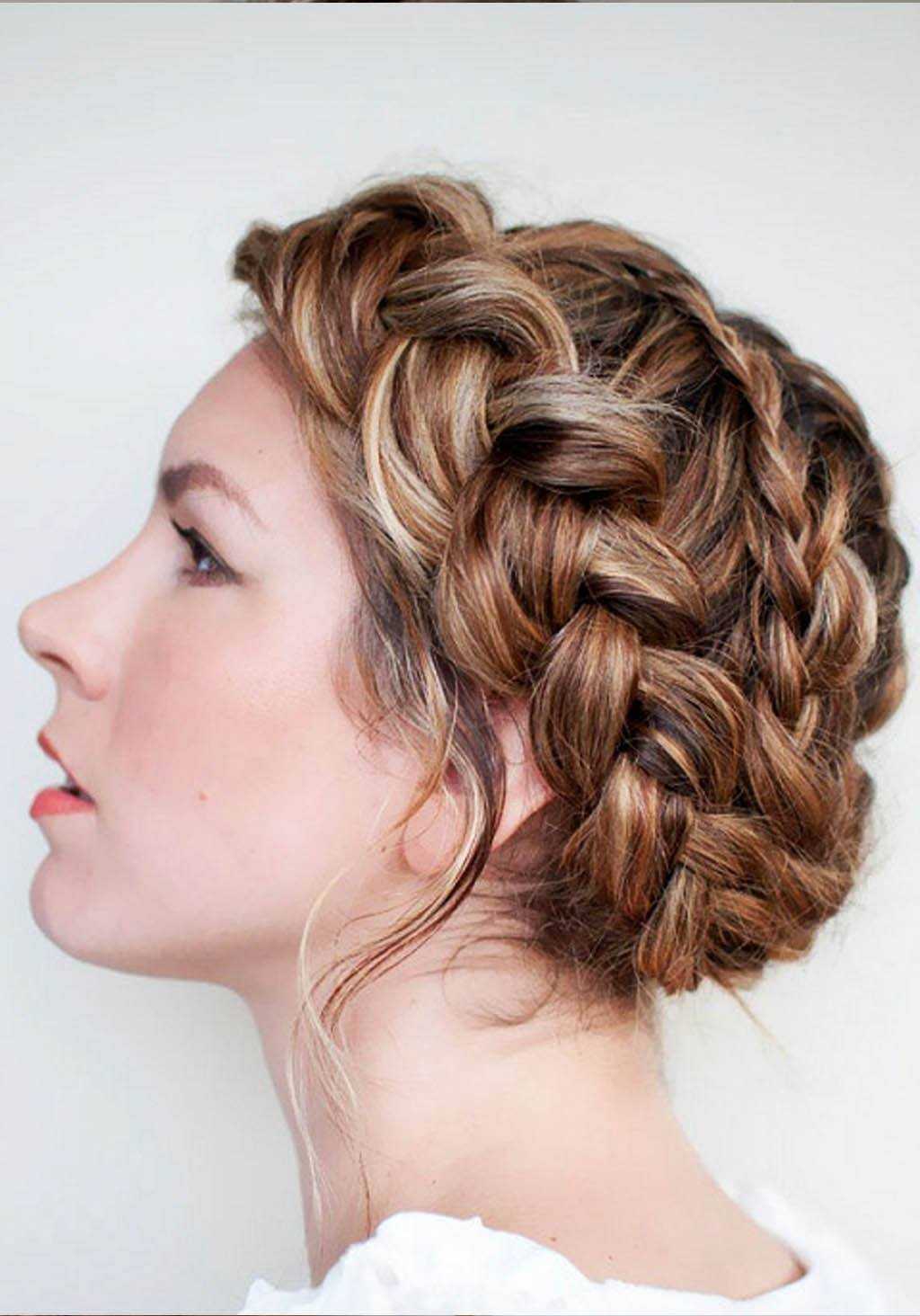 - коса вокруг головы – лучшее решение для обладательниц круглого лица. Волосы, уложенные и переплетенные в виде короны или корзинки, добавляют девушке величественности и шарма;