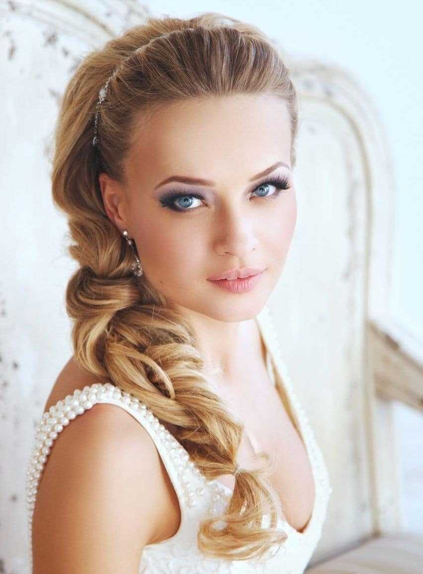 - коса, уложенная на бок (а-ля русская коса), и асимметричный пробор добавят лицу мягкости.