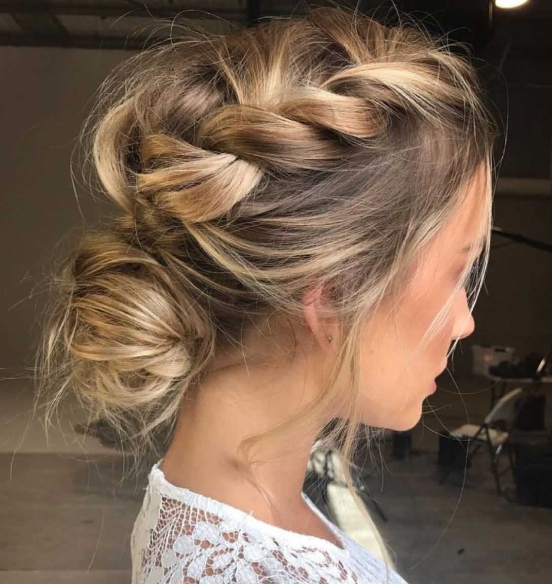 - две слегка небрежные косички по сторонам визуально удлиняют лицо. Романтический флер прически в виде небрежных прядок в районе висков и лба добавит девушке женственности и мягкости;