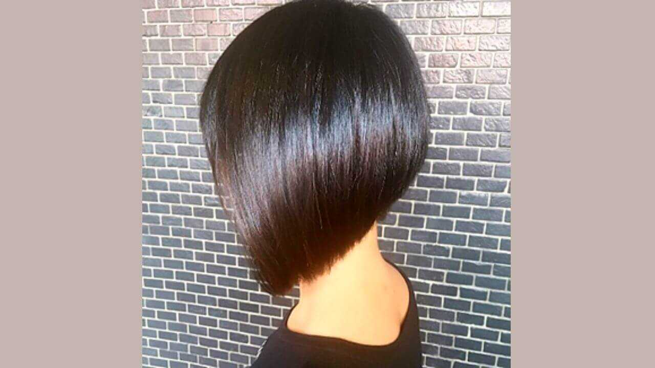 Отличительная особенность – на затылке пряди коротко состригаются, что позволяет открыть шею, а к височной области постепенно удлиняются и спадают вперед. Это популярный вариант, когда угол повторяет линию скул. Угол и желаемую длину волос озвучивает сама клиентка. Хорошо подойдет тем, кто желает визуально удлинить лицо или скрыть его грубые черты.