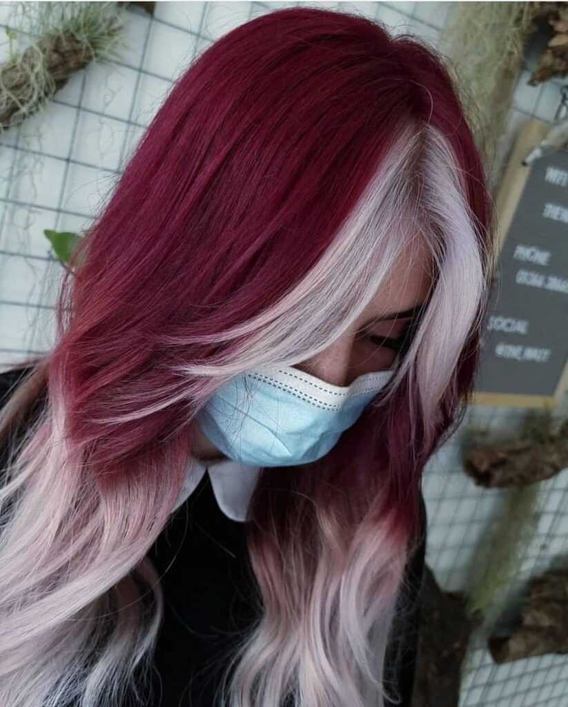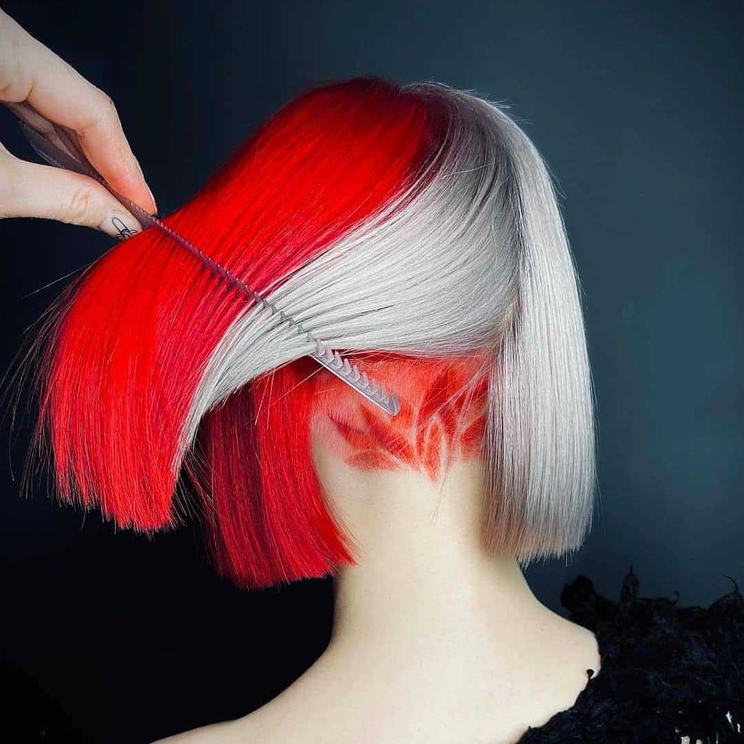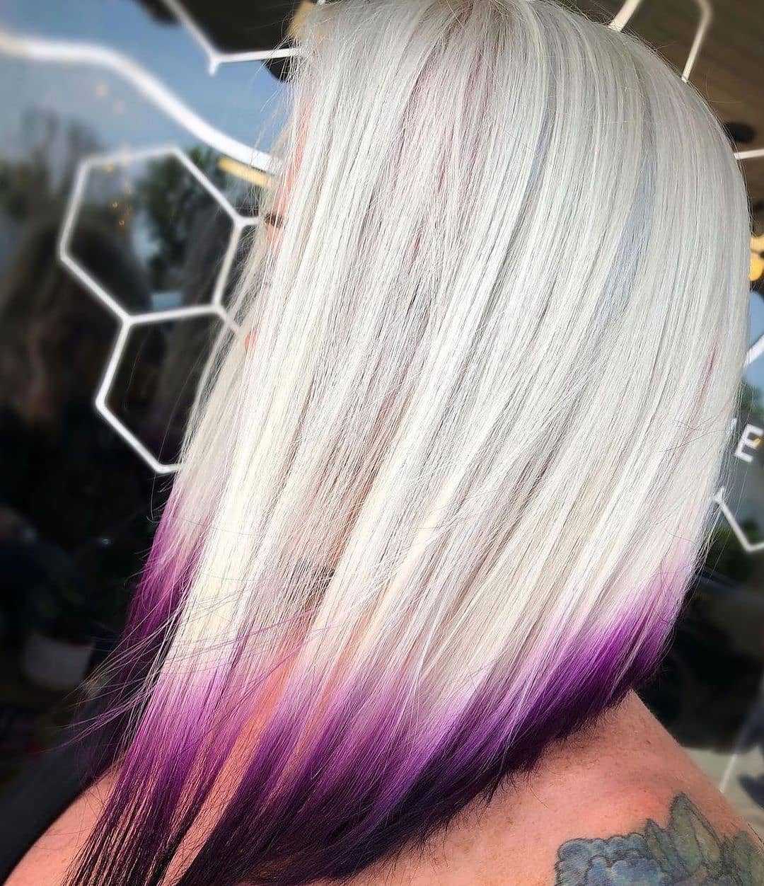 Необычное решение – скрытое окрашивание белым под волосами. При определенном проборе или поднятии волос будут видны светлые пряди.
