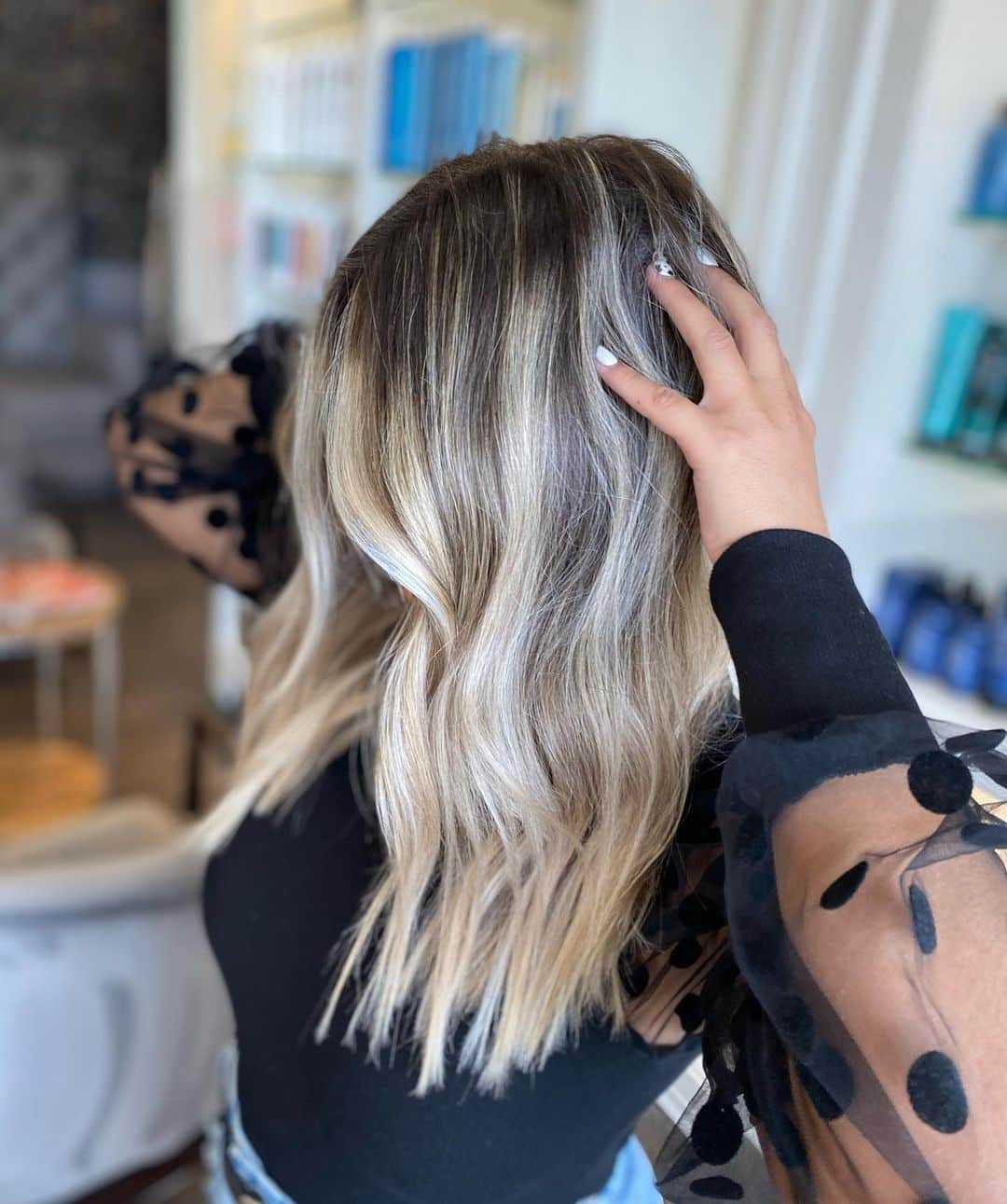 Рассматривая модные вариации окрашивания волос, востребованные в 2021 году, стоит обратить внимание на холодный блонд. Он хорошо будет смотреться на средних волосах