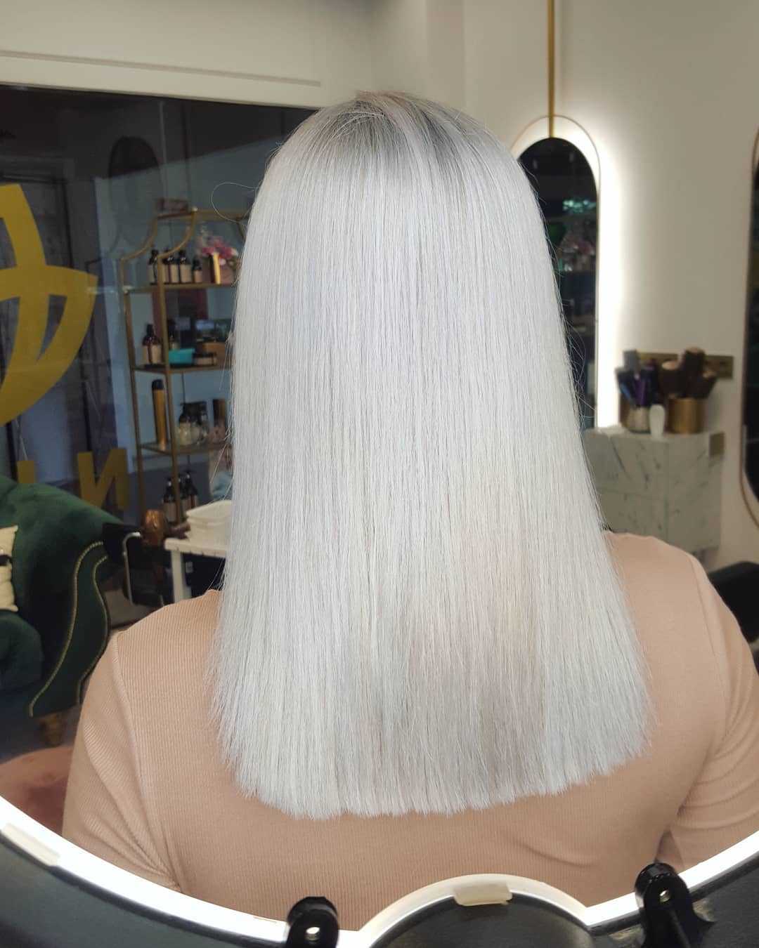 Полное окрашивание волос в белый – это любимый способ блондинок. Можно тонировать в разные оттенки, поскольку тонированный белый смываешься со временем.