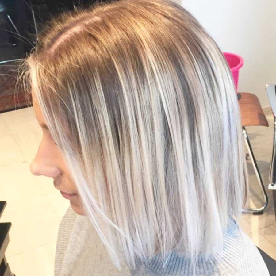 Эффектный белый градиент на волосах состоит в более равномерном переходе от корней до кончиков. Окрашивание может быть в двух, трех и более цветов.
