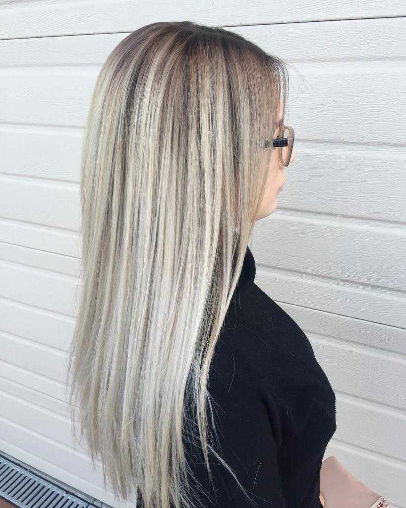Она считается универсальной, поскольку в ней одновременно сочетаются ледяные и теплые тона, поэтому одинакового хорошо выглядит на девушках разных цветотипов. Из всей палитры представленных светлых оттенков такое модное окрашивание волос — одно из самых темных, больше всего приближен к нему бежевый блондин и русый цвет.