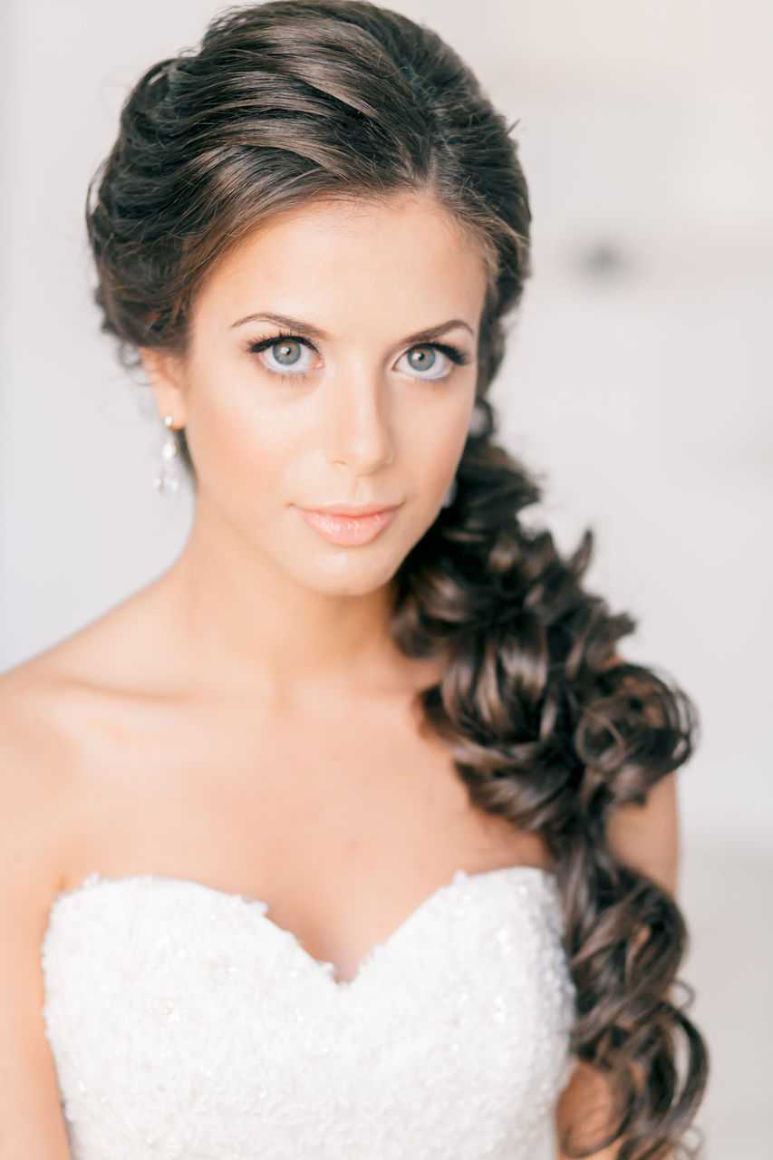 Эффектно будет смотреться простая коса на вьющихся волосах, заплетенная набок. Сделать такую прическу более стильной можно, используя для фиксации свободную часть волос, которую обматывают в конце косы. Также можно оставить одну подкрученную прядь у лица.