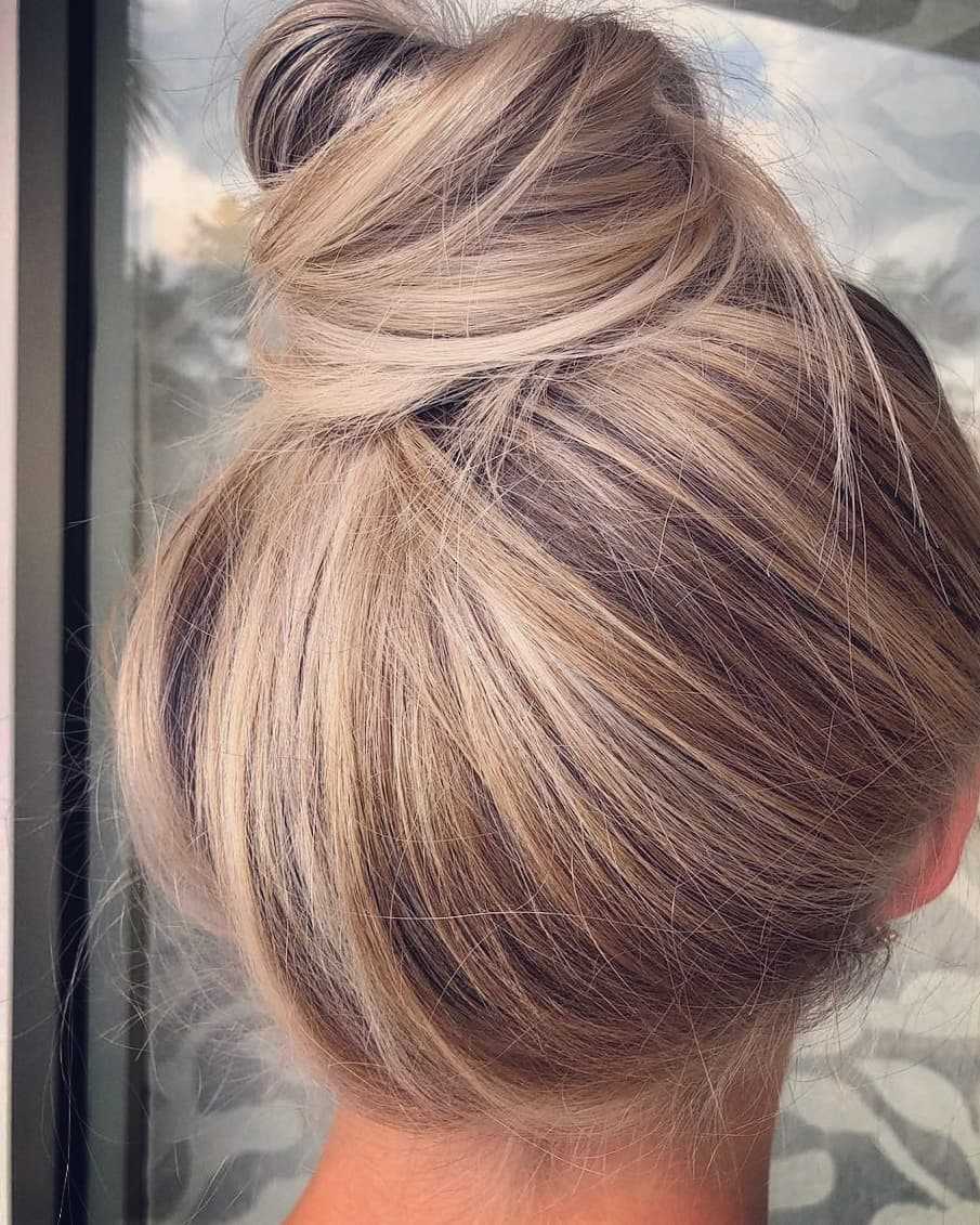 Платиновый блонд выгодно выглядит в сложных техниках окрашивания: балаяж, омбре, мелирование.