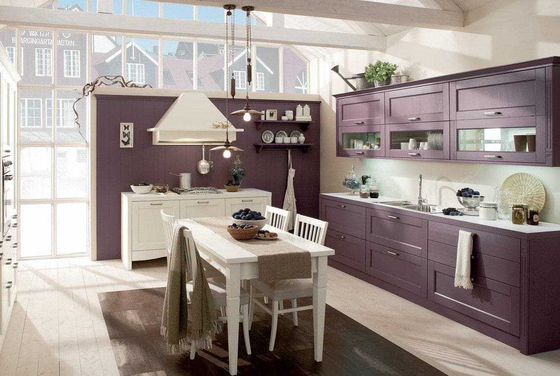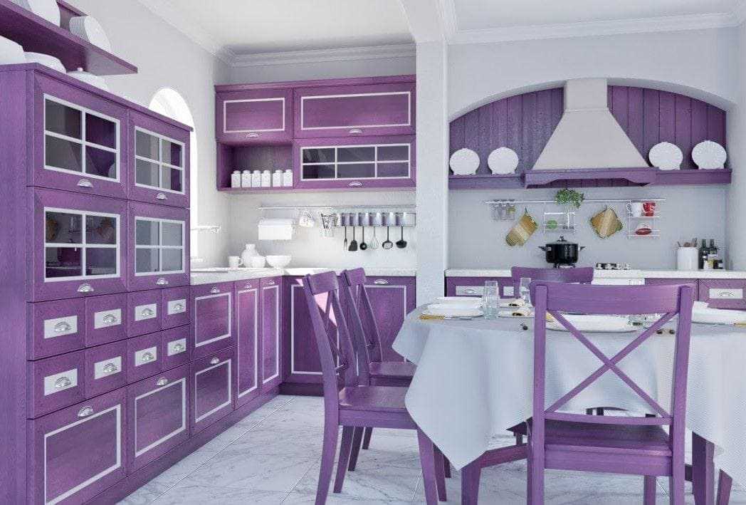 В стиле Чистый фиолетовый чаще всего встречается в дизайне спальни и кухни. Лавандовая кухня оформлена с использованием натурального дерева или качественной имитации, которая украсит блюда из баранины. В центре шприцев – окрашенные поверхности деревянных сундуков, крошечные цветочные мотивы и пышные клумбы на пальцах ног.
