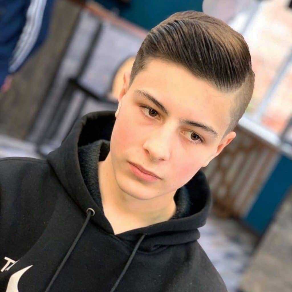 Это лучшая арабская прическа для мальчиков типа. В основном, этот вид подчеркивают подростки, когда боковые части головы только слегка выбриты над ушами, а оставшиеся волосы выглядят немного грязно и вьющимися. Волосы иногда выглядят более длинными, чем обычно, вперед.